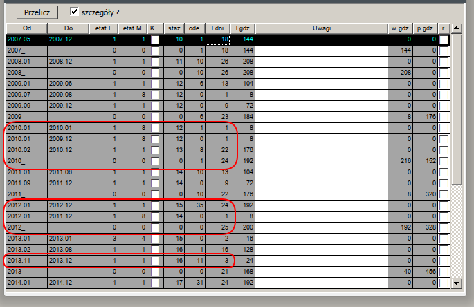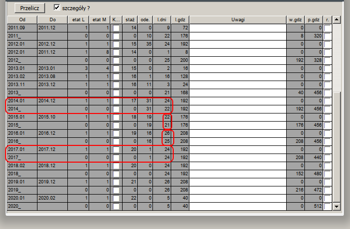 Teraz drukuje wszystkich, którzy przepracowali choć jeden dzień w danym roku, i nie drukuje osób "ukrytych".