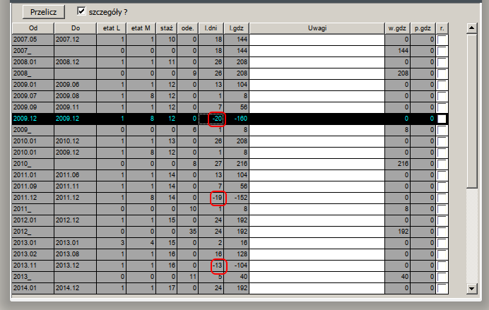 Dziwny jest zapis za 2009.12 -20dni ?!