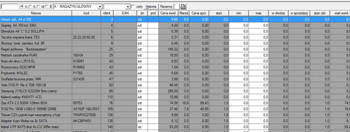 w Zestawienia->Magazyn