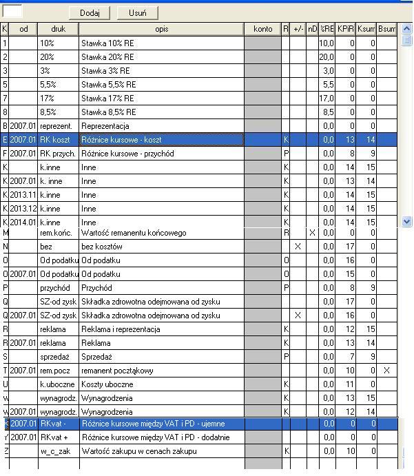 wklejam zdjątko KD zeby wsztskiego recznie nei wpisywać - jest tak kilka pozycji "k. inne " i w kolumnie R jest lit. K :-)