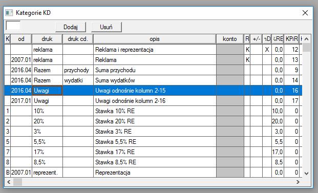 Witam. Zrobiłem dogrywkę i cały czas brakuje mi kolumny 17. Przeczytałem wątki o modyfikacji wydruku kpir i nie mogę dojść o co chodzi. Nie wiem czy coś muszę jeszcze zrobić w słowniki/kategorie kd. Wygląda to u mnie tak: