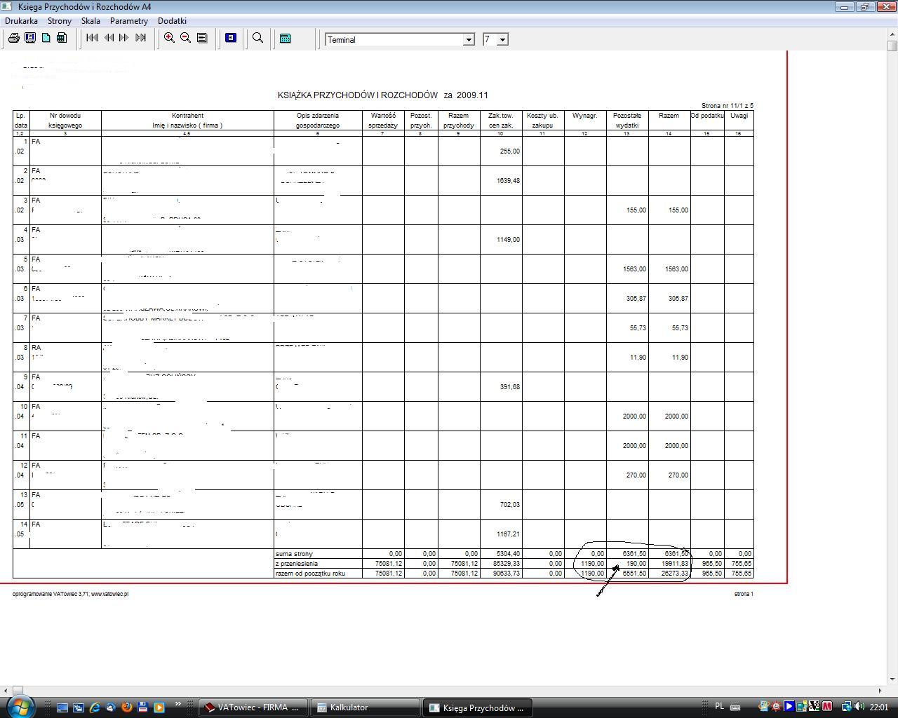 Proszę o pomoc w miesiącu XI-09 pojawia mi się błąd przy wydruku KPIR.