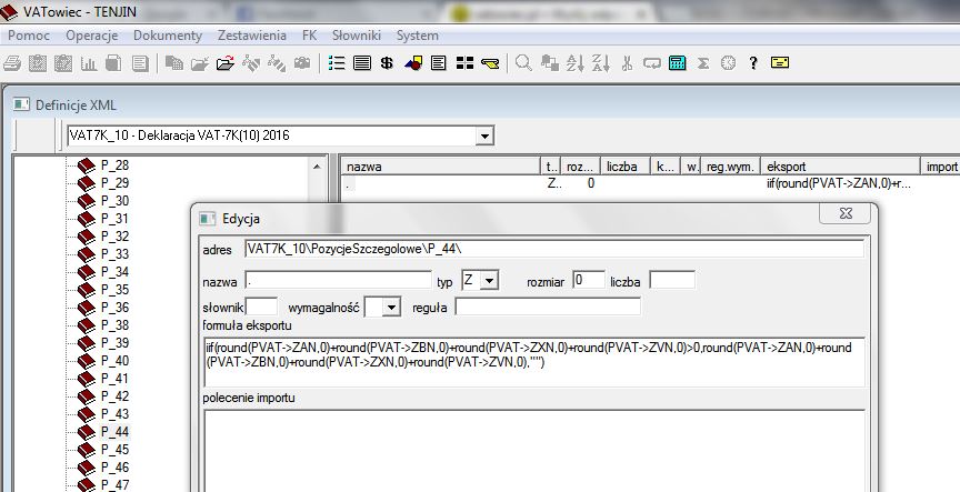 Przeedytowałem plik XML_STR dodając formuły do pozycji 44 i 45.