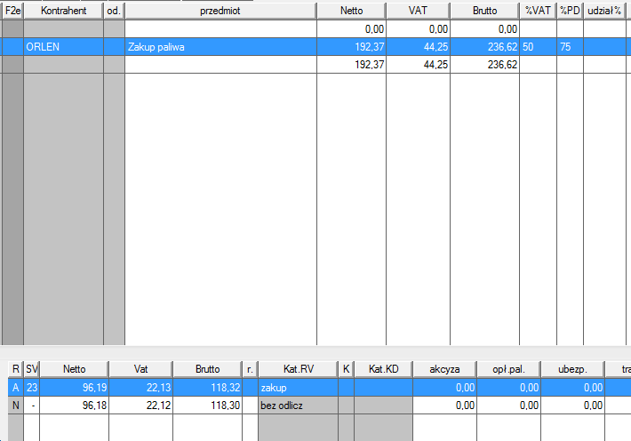 Automat zadziała jeśli wpiszemy do kolumny "%VAT" odpowiednią wartość np. 50