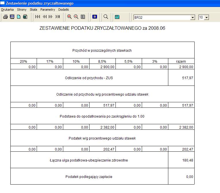 Niby powinno wychodzić, że podatek do zapłacenia jest (202 zł - 180 zł), ale w zestawieniu jest 0... :roll: