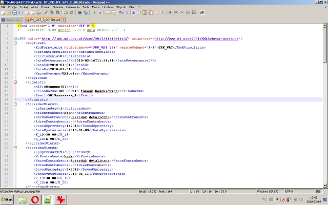 Trzeba w notatniku otworzyć zbiór XML i poszukać nieprawidłowości.