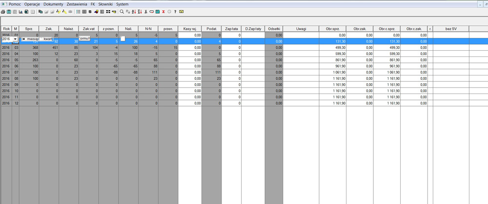 menu Zestawienia->Podatek VAT