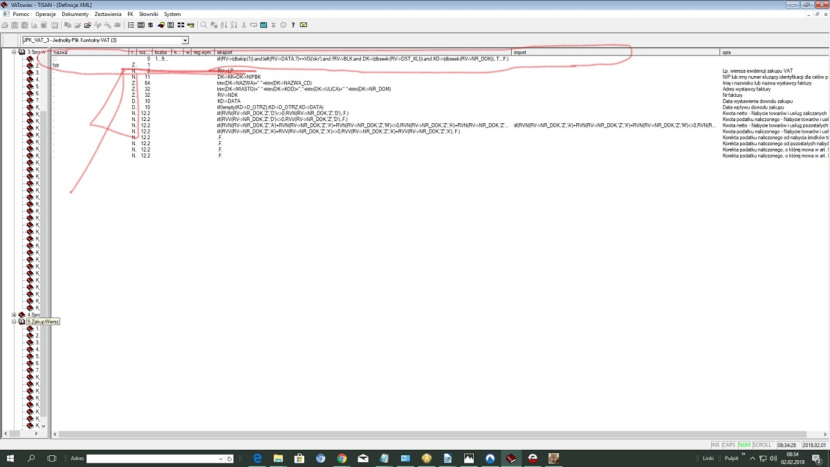 Identyczne operacje wykonać dla JPK_VAT_3\5.ZakupWiersz\ poz 1. i poz. 2