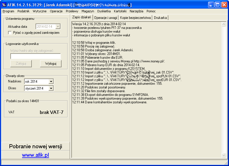 Na terenie województwa łódzkiego możemy bezproblemowo dojechać, aby skonfigurować program pod specyfikę firmy albo zademonstrować sposób użycia programów (np. jak zgrać plik z danymi i jak wczytać przetworzone dane). Jednym z obsługiwanych programów jest również VATowiec.
