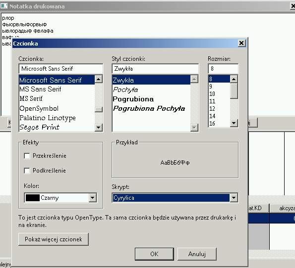 Jak nie działa najlepiej, to zaznacz tekst w notatce, prawy myszy->czcionka i wybierz "Cyrylica".