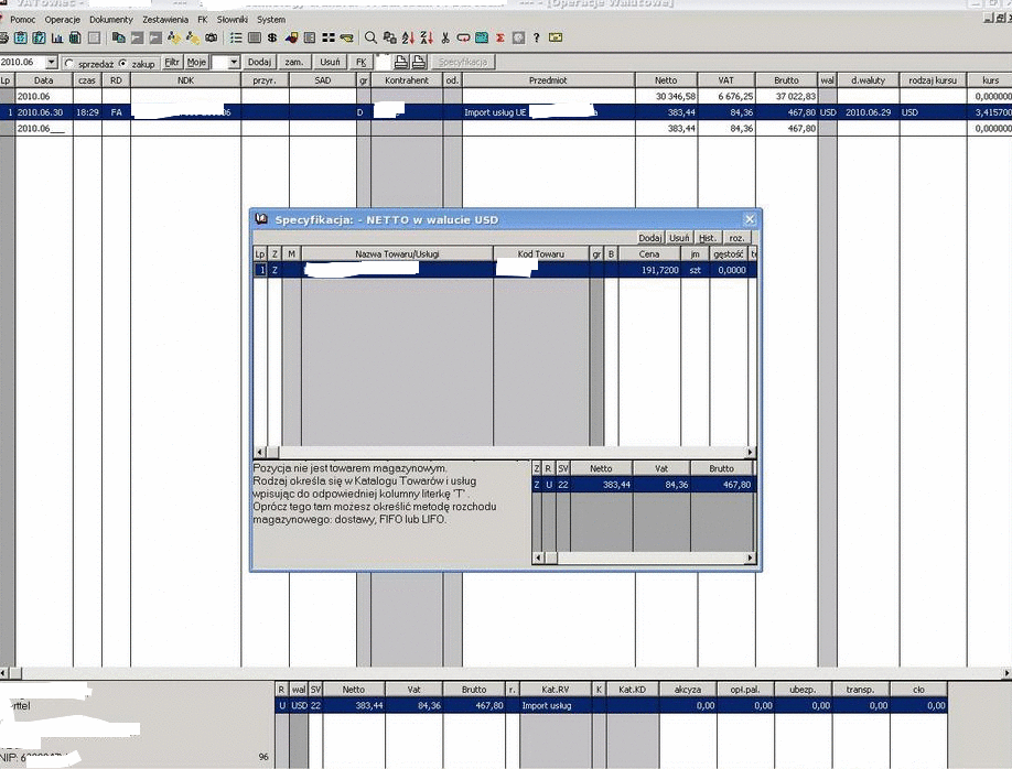 Podczas sumowania program jeszcze raz sprawdza specyfikację, proszę ją wykonywać przynajmniej raz w miesiącu (chodzi o tą w operacjach walutowych).