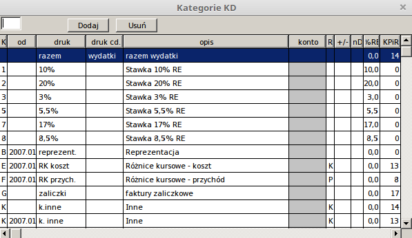 Witam. Zrobiłem dogrywkę i cały czas brakuje mi kolumny 17. Przeczytałem wątki o modyfikacji wydruku kpir i nie mogę dojść o co chodzi. Nie wiem czy coś muszę jeszcze zrobić w słowniki/kategorie kd. Wygląda to u mnie tak: