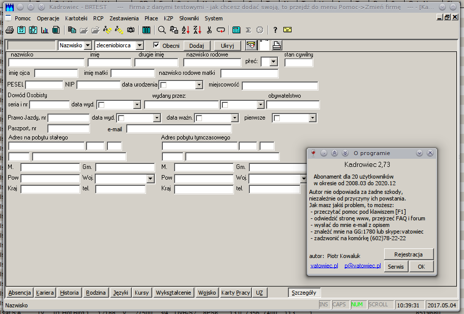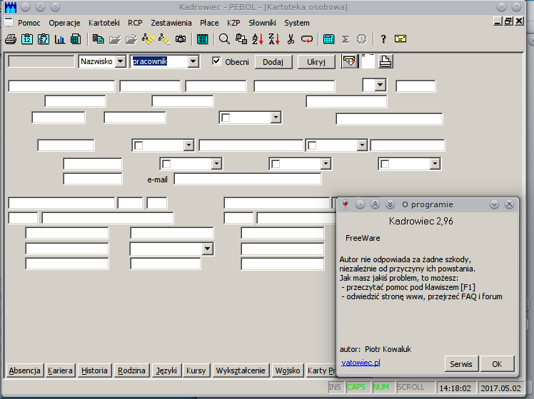 Po aktualizacji do najnowszej wersji Kadrowca wkradł się mały, ale upierdliwy błąd - przestały być widoczne opisy pól w szczegółach pracownika.