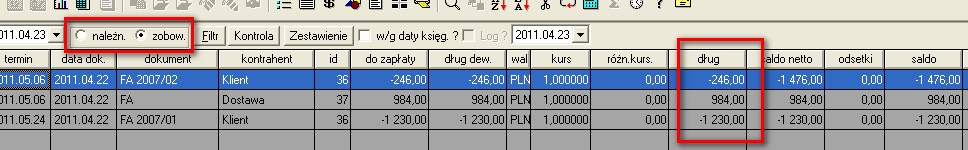 Jako nowy użytkownik próbuję rozgryźć Vatowca. Stworzyłem próbną firmę, która ma dwie wystawione faktury i jeden zakup. Niestety w zestawieniach (należności i zobowiązania) należność znajduje się po stronie zobowiązań (co prawda ze znakiem minus) co dla mnie wydaje się cokolwiek dziwaczne. Czy ktoś wie co zrobić aby było poprawnie? Co robię źle?