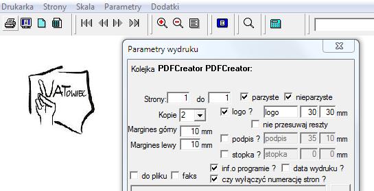 Następnie na podglądzie wydruku klikamy na Drukuj i w opcjach zaznaczamy "logo" z możliwością podania jego rozmiarów.