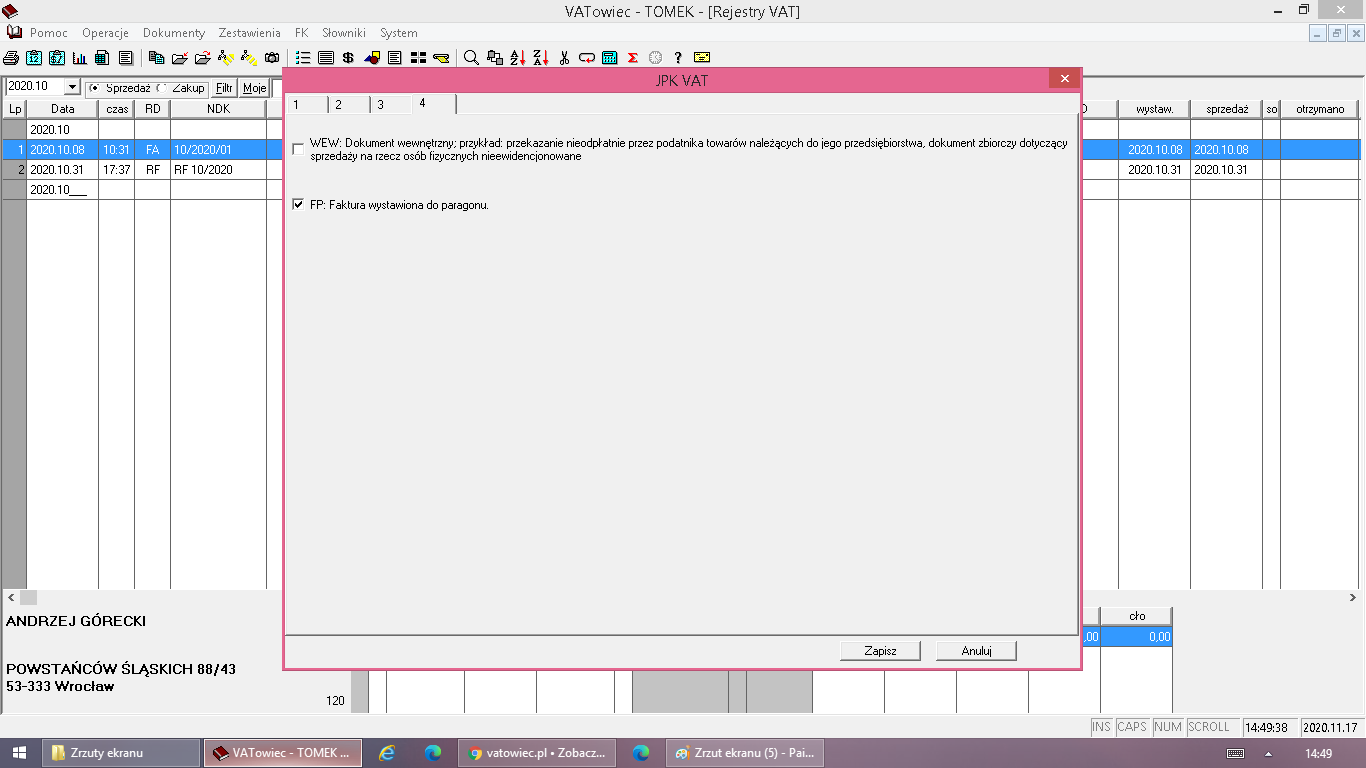 <DowodSprzedazy>10/2020/01</DowodSprzedazy>
