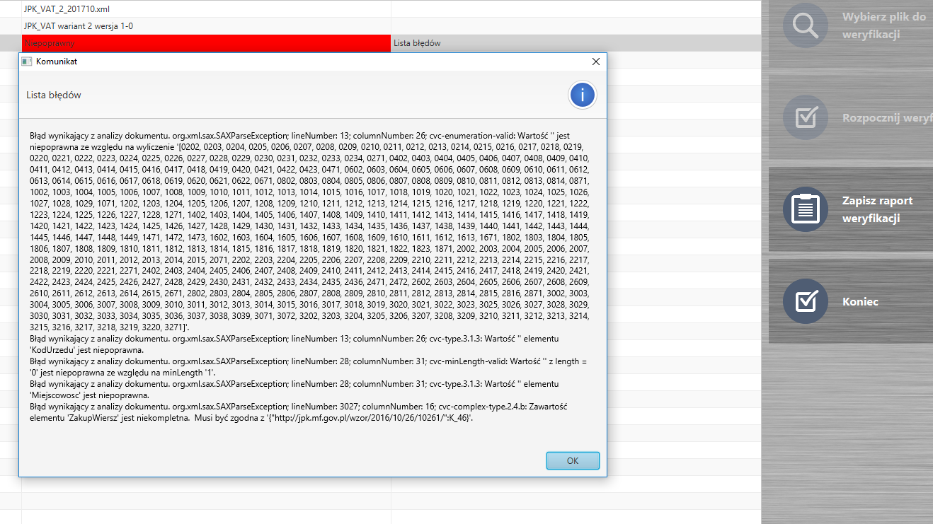 Przy weryfikacji pliku jpk wyskakuje błąd.