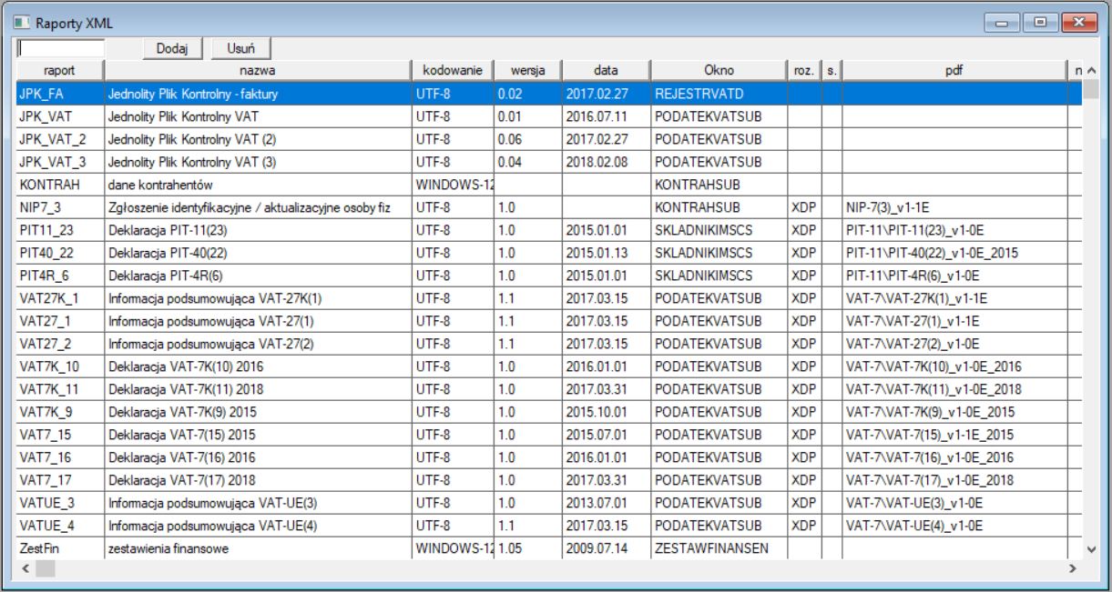 2. W Raporty XML, kolumna pdf wpisujemy: VAT-7(17)_v1-0E_2018.