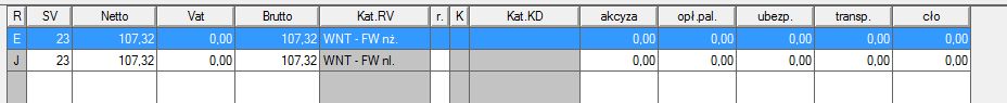 W rejestrze VAT zakupu pojawia się ta faktura "wyszarzona" z Vatem jak wyżej i to jest chyba też OK. Do niej pojawia się faktura wewnętrzna z dwiema pozycjami (kategorie E i J) w stopce. Obie mają stawkę VAT 23%, ale kwota VAT jest też 0zł. A powinna być wyliczona wg stawki 23%. :?