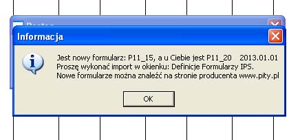 Mimo wykasowania z formularzy IPS druków PIT11 wszystkich oprócz aktualnego czyli PIT11_20 oraz usunięciu ich z folderu DRUKFORM przy próbie eksportu danych do formularza IPS pojawia się błąd z załączonego sceenu, tzn. po kliknięciu OK formularz PIT11_20 pojawia się i bezproblemowo eksportuje do niego dane, jednakże dlaczego mimo skasowania starych druków jest taki błąd? Czy ktoś wie jak go wyeliminować?