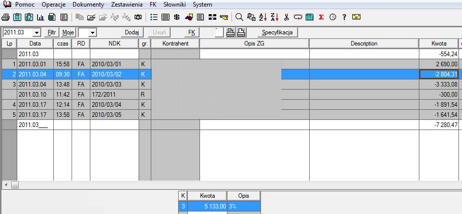 Chodzi o to, że kwota w polu Kwota jest różna od kwoty w stopce - co widać na załączonych zrzutach ekranu dla kilku wprowadzonych faktur.