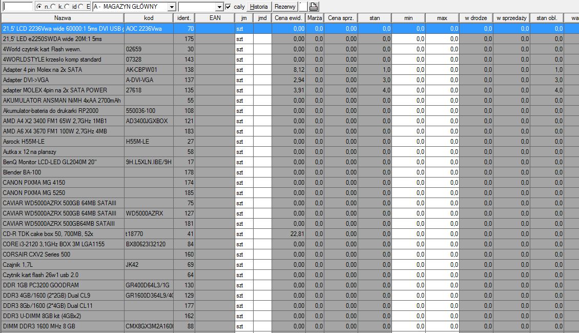 np. Zestawienia->Magazyn->"cały" <- czy ona nie działa ? czy coś usprawnić ?