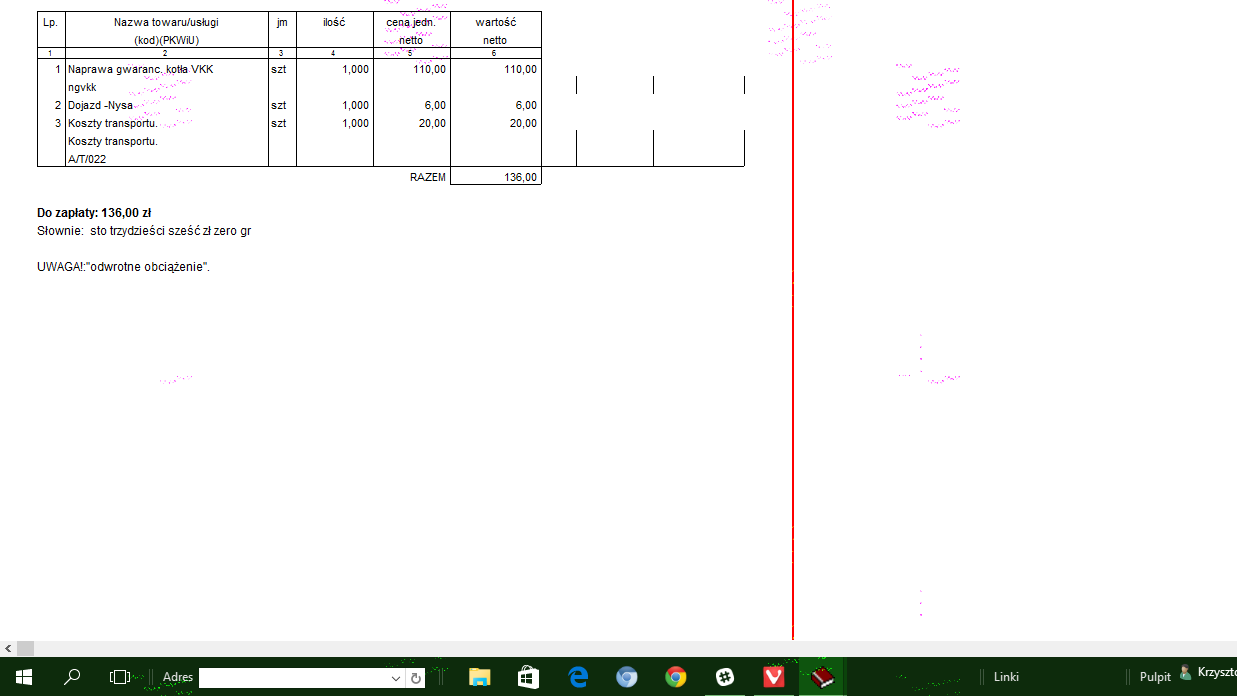 - w nazwie towaru i usługi w kolumnie "SV" wprowadzałem zapis "NP",