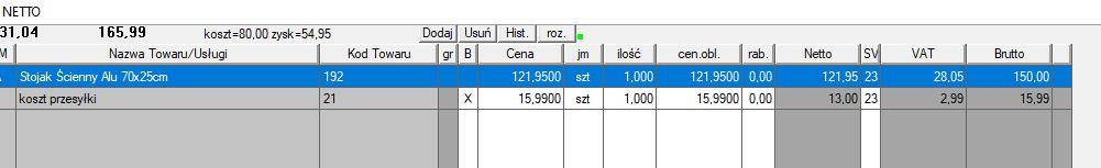 Wypiczony zysk nie uwzględnia kosztów przesyłki które nie są zyskiem, jak mogę oznaczyć koszt przesyłi by nie był liczony do zysku.